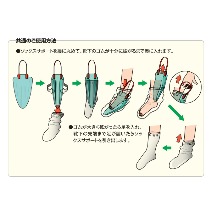 足に手が届かない方でも、一人で簡単に靴下が履けるサポートアイテムです。